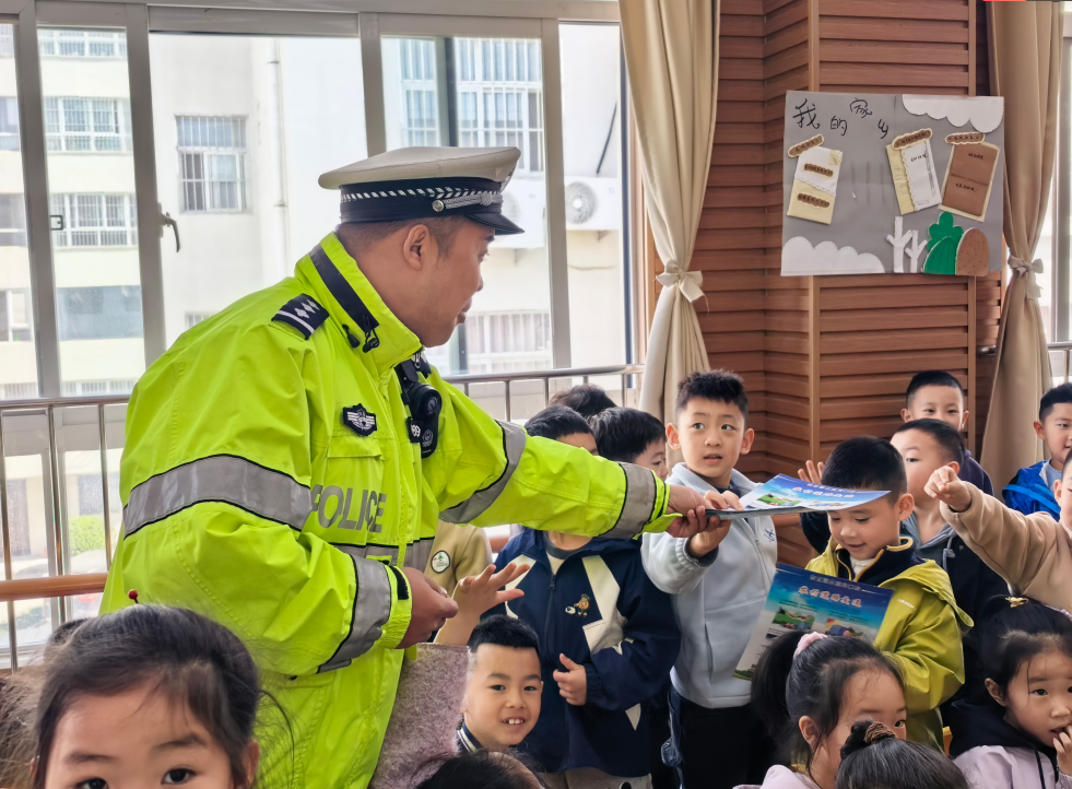 互动环节气氛热烈,民警邀请小朋友化身“小小交警”,现场穿戴反光装备、演练基础交通指挥手势,在沉浸式体验中认识交通信号与指挥规则。互动问答环节,孩子们踊跃举手抢答,在欢声笑语中牢记安全常识。活动最后,民警还向小朋友们发放交通安全宣传手册,鼓励大家争做家庭文明交通“小宣传员”。