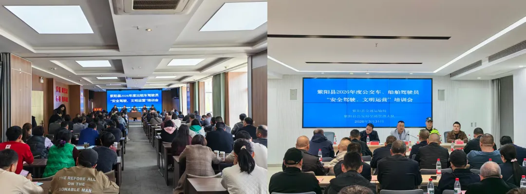 为深入贯彻落实上级关于文旅工作交通保障及运输安全工作部署要求,全面提升全县营运车辆、船舶驾驶员安全素养与文明服务水平,3月31日,紫阳县交通运输局联合县公安局交管部门组织开展出租车、公交车、船舶驾驶员“安全驾驶、文明运营”培训会。县交通运输局相关领导、县交通运输服务中心相关负责人、县交通运输综合执法大队负责人、县交管大队相关负责人出席会议,近两百余名驾驶员参加培训。