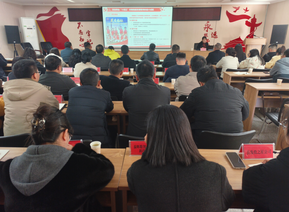 11月25日,学习贯彻党的二十届四中全会精神县委宣讲团在县属国有企业系统进行集中宣讲。县委宣讲团成员、县农村基层党建事务中心主任赵一铭作专题宣讲报告。县财政局主要领导、分管领导及相关人员,县属国有企业领导班子成员、中层管理人员和党员职工70余人参加了宣讲报告会。