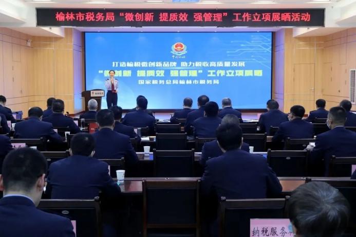 最美四月天,奋发正当时。为深入学习贯彻党的二十大精神,认真落实总局、省局税收工作部署,紧紧围绕“抓好党务、干好税务、带好队伍”税收现代化建设总目标,厚植“落实是主题词 创新是新常态”工作理念,4月21日,国家税务总局榆林市税务局围绕“打造榆税‘微创新’品牌 助力税收高质量发展”主题,在市局14楼会议室组织开展“微创新 提质效 强管理”工作立项展晒活动。榆林市税务局负责人出席并致辞。活动特邀国家税务总局陕西省税务局二级调研员张红印、征科处副处长蔺涛,征科处一级主任科员党晓杰及市局领导担任评委,全市税务系统17家单位进行了立项展晒。