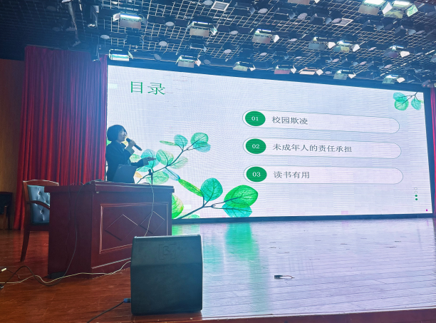 卢双阳律师以《普法进校园 青春向阳生》为题,结合服务西部地区的法治实践经验,从青少年易接触的风险场景入手,详细剖析校园欺凌的传统暴力与网络霸凌形式,并提出“保持镇静、及时求助、留存证据”的实操自救方法。针对未成年人网络诈骗高发现象,她通过典型案例破除“法不责幼”误区,并结合蒲城本地人才政策,引导学生认识“法律是底线,知识是底气”,既要守法,更要通过学习成就未来。