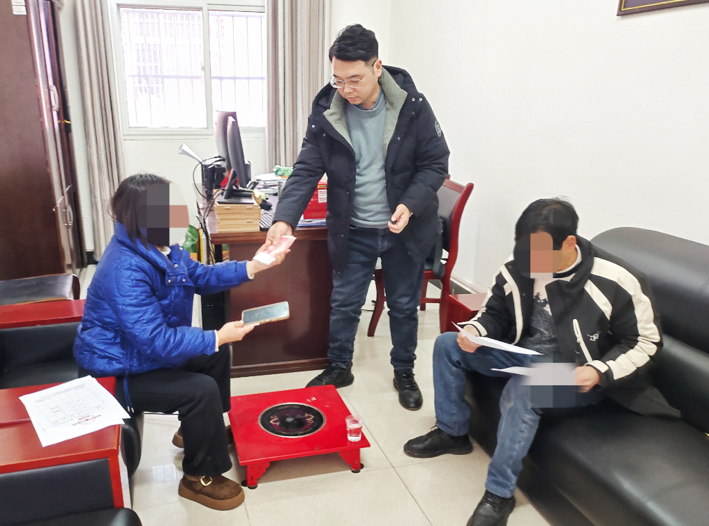 五次上门,五次调解,话越说越开,理越辩越明,心结也一点点融化。最终,双方各让一步,达成了都能接受的调解方案。于是,出现了开头现金交付、握手言和的一幕。
