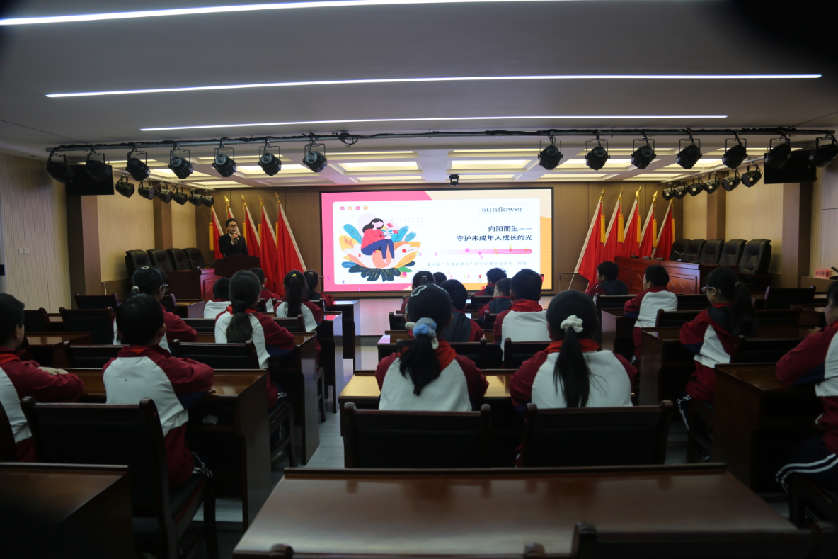 活动中,“东秦新青年”宣讲团潼关分团成员走到台前,用青年人特有的亲和力和表达方式,以“向阳而生”为题,为同学们揭开了未成年人检察工作的“神秘面纱”。宣讲团成员通过讲述真实办案故事,深入浅出地介绍了检察机关在保护未成年人权益、教育挽救涉罪未成年人等方面所做的工作,让学生们在故事中感受法律的威严与温情,也体会到国家对未成年人健康成长的高度重视和特殊关怀。