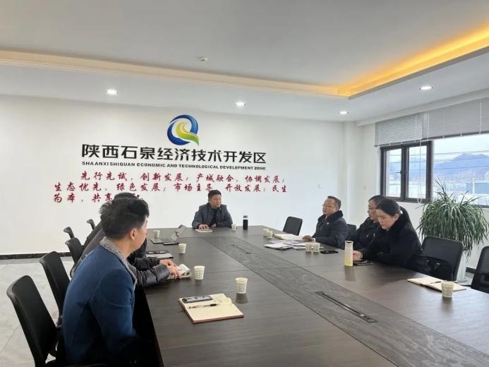 为持续优化法治化营商环境,全力保障辖区企业高质量发展,近日,石泉法院民事审判庭庭长罗金忠、柳城法庭庭长韩维、法官牟道彬等一行四人走进工业园区,与开发区管委会工作人员进行了交流座谈。
