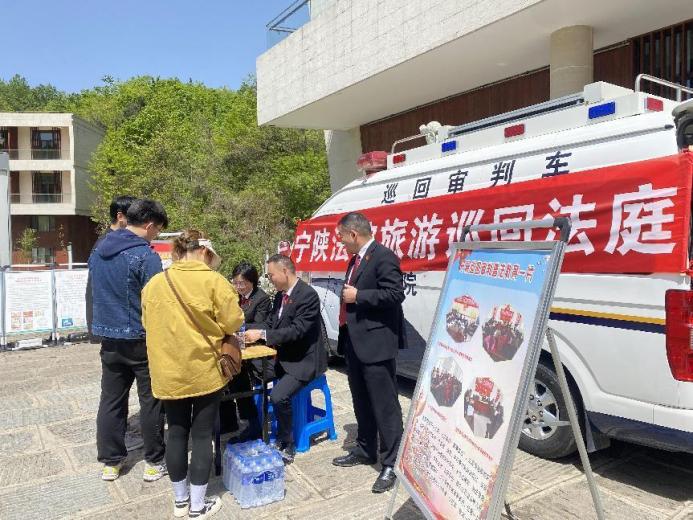 为切实保障游客合法权益,构建和谐文明景区,营造法治护航旅游的浓厚氛围,助推宁陕生态旅游健康发展,在“五一”假期来临之际,4月29日,宁陕法院旅游巡回法庭在悠然山高山湿地景区、渔湾逸谷等旅游景区开展普法宣传法律服务活动。