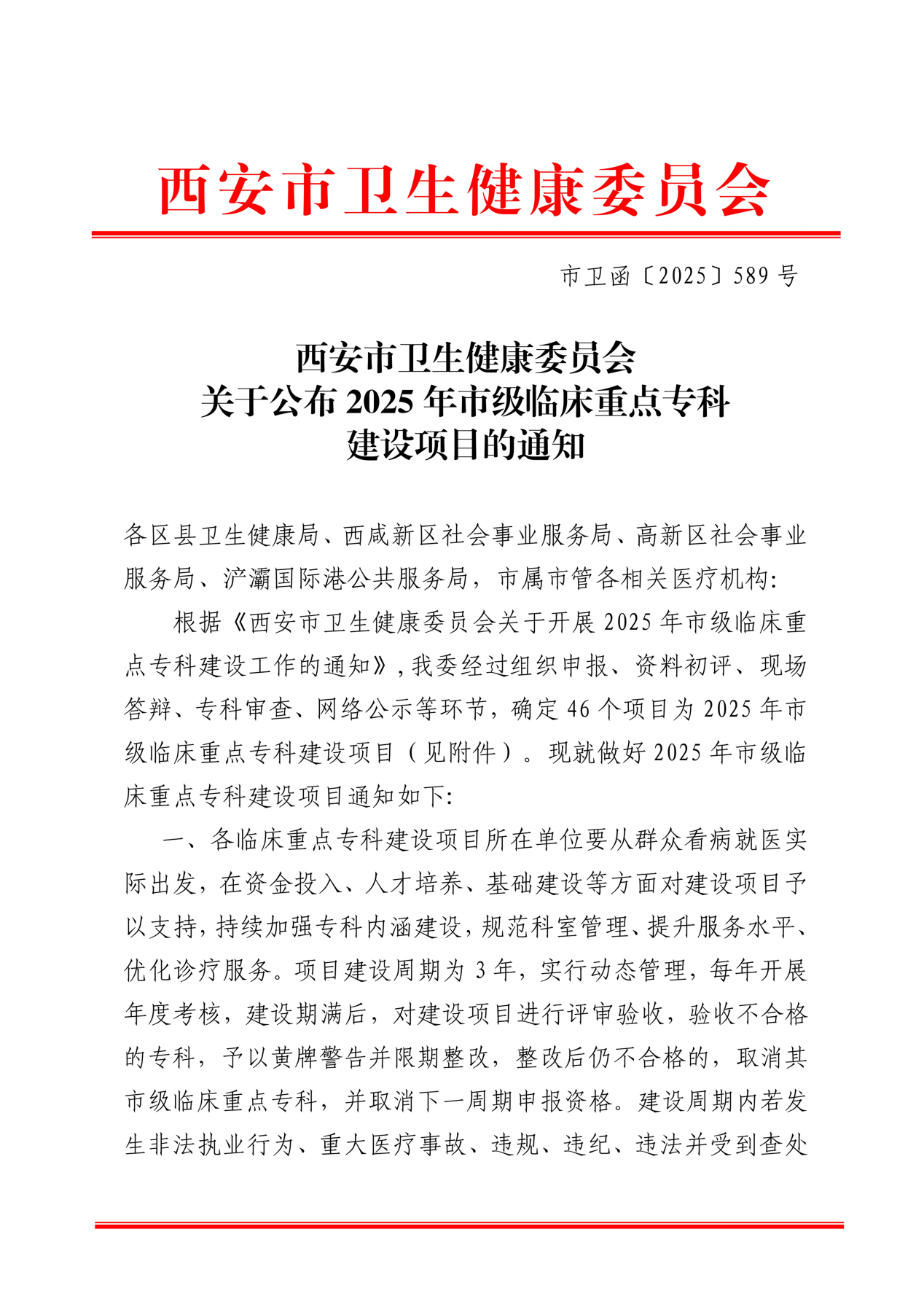 “西安市临床重点专科”是西安市卫健委在医疗领域授予的“金字招牌”,代表本市该专业的最高水平之一。
