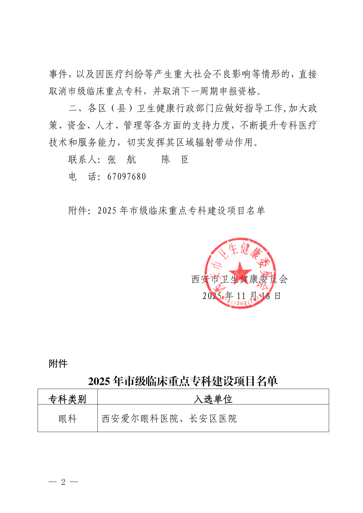 近日,西安市卫生健康委员会正式公布了2025年市级临床重点专科建设项目名单,西安爱尔眼科医院凭借其卓越的专科实力成功入选。