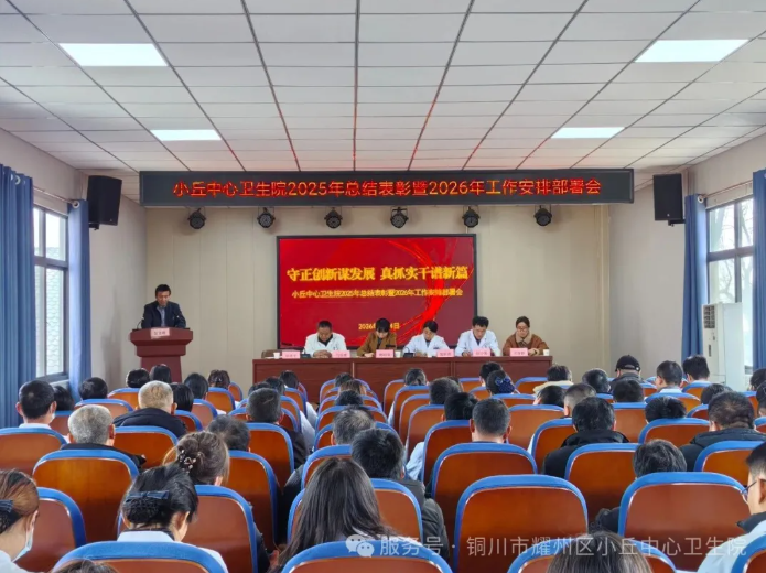 春阳送暖,万物勃发。近日,恰逢二十四节气之首的立春,耀州区小丘中心卫生院会议室内暖意融融、氛围热烈,下午13时,2025年度工作总结表彰暨2026年工作安排部署会如期召开。会议以“守正创新谋发展 真抓实干谱新篇”为主题,全面复盘2025年各项工作成效,表彰先进典型,精准部署2026年重点任务,动员全院上下以春的朝气、拼的劲头,奋力开启基层医疗高质量发展新征程。会议由党支部委员徐孝平同志主持,院领导班子、全体干部职工及辖区村医等百余人齐聚一堂,共赴这场“春之邀约”。