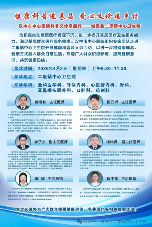 乡亲们注意啦!不用挤公交、不用排长队,市级三甲医院专家团队带着“健康礼包”空降城固县二里镇中心卫生院!