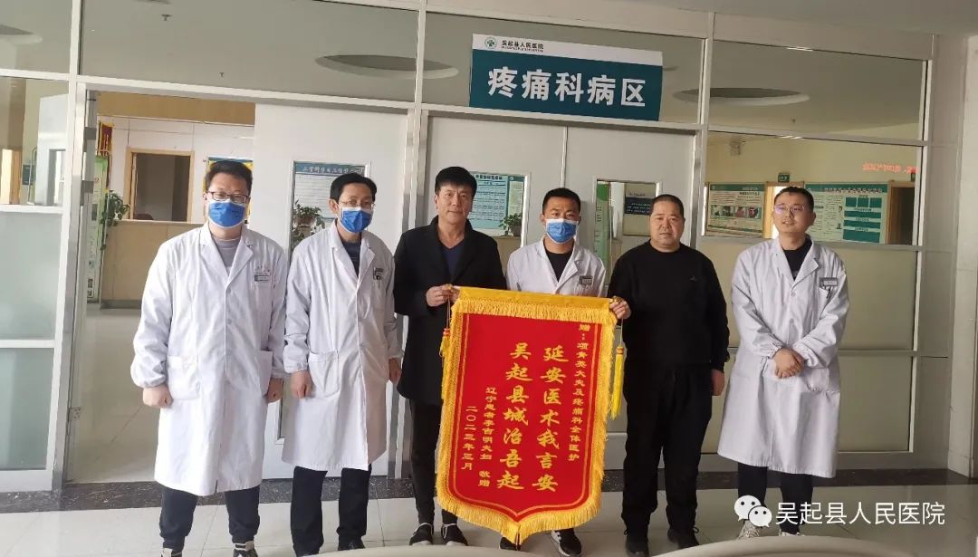 3月27日,一面印有“延安医术我言安 吴起县城治吾起”的锦旗被送到吴起县人民医院疼痛科病区医护人员手中,感谢疼痛科团队对其精心救治。