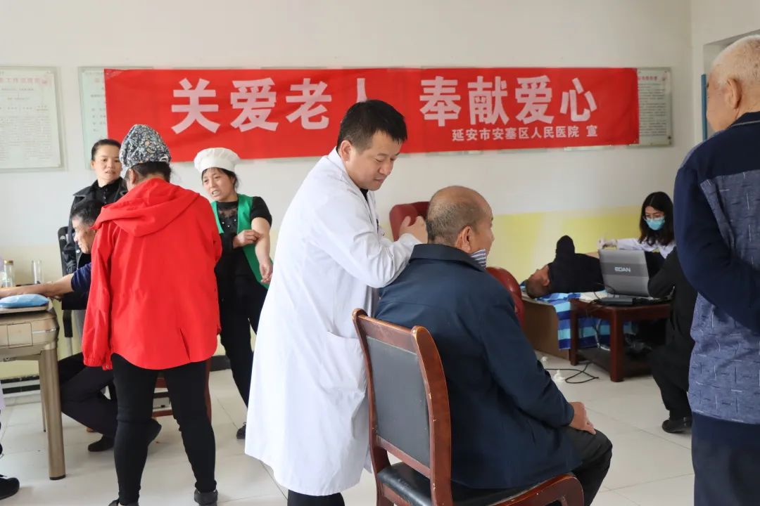 与此同时,组织张思德党员先锋志愿服务队和医共体总院(延安市中医医院)派驻专家深入化子坪镇敬老院开展“关爱老人,奉献爱心”志愿服务活动,大家秉着为人民健康服务的初心,结合自身专长,把健康知识、暖心义诊和居家药学服务送到老人们身边,为他们提供免费健康体检服务,进行面对面的健康宣教、指导老年人合理用药、讲解日常饮食、平时锻炼注意事项,对一些老年常见慢性病的防治提供了全面指导。由于老人行动不便、服药种类多、药学知识缺乏,此次义诊服务集合了医师、检验及康复理疗等方面人才,旨在通过主动上门的志愿服务带给他们更多的便利和温暖。