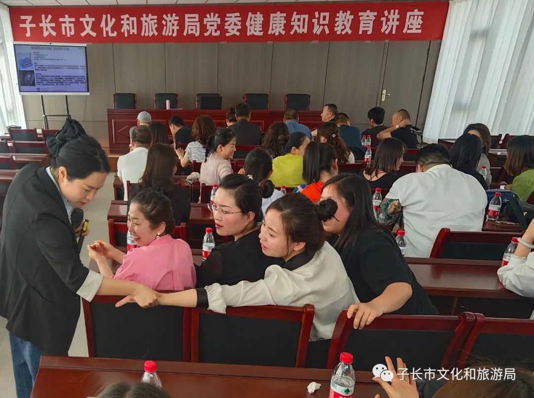 为进一步丰富文旅系统职工干部的卫生防病知识和健康保健知识,培育文明健康新风,5月17日,子长市文化和旅游局党委特邀安全健康教育网陕西中心董雪蕾老师开展“关爱健康 你我同行”健康教育知识讲座。