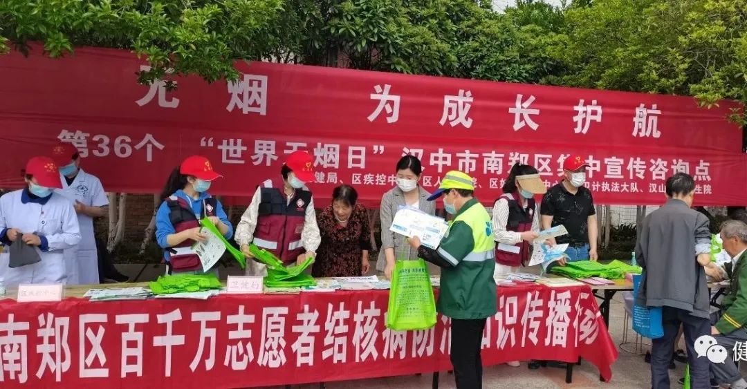 5月30日,由南郑区卫健局主办、区疾控中心承办的“无烟 为成长护航”主题活动正式拉开帷幕,来自南郑区人民医院、区卫计综合监督执法大队、区妇计中心、区疾控中心和汉山中心卫生院的专业技术人员通过摆放宣传展板、发放宣传折页、讲解烟草危害知识、开展现场戒烟指导等方式,积极开展控烟宣传教育。