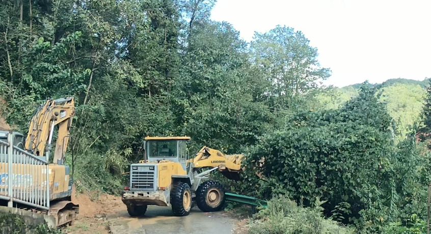 基础设施抢修同步紧锣密鼓进行。针对降雨造成的泥石流阻断道路、河道杂草枯木堆积、路面积水等问题,调度铲车等机械紧急进场,抢通被淤塞的乡村道路,清除河道行洪障碍,组织人员用铁锹、水泵排除路面及田间积水。