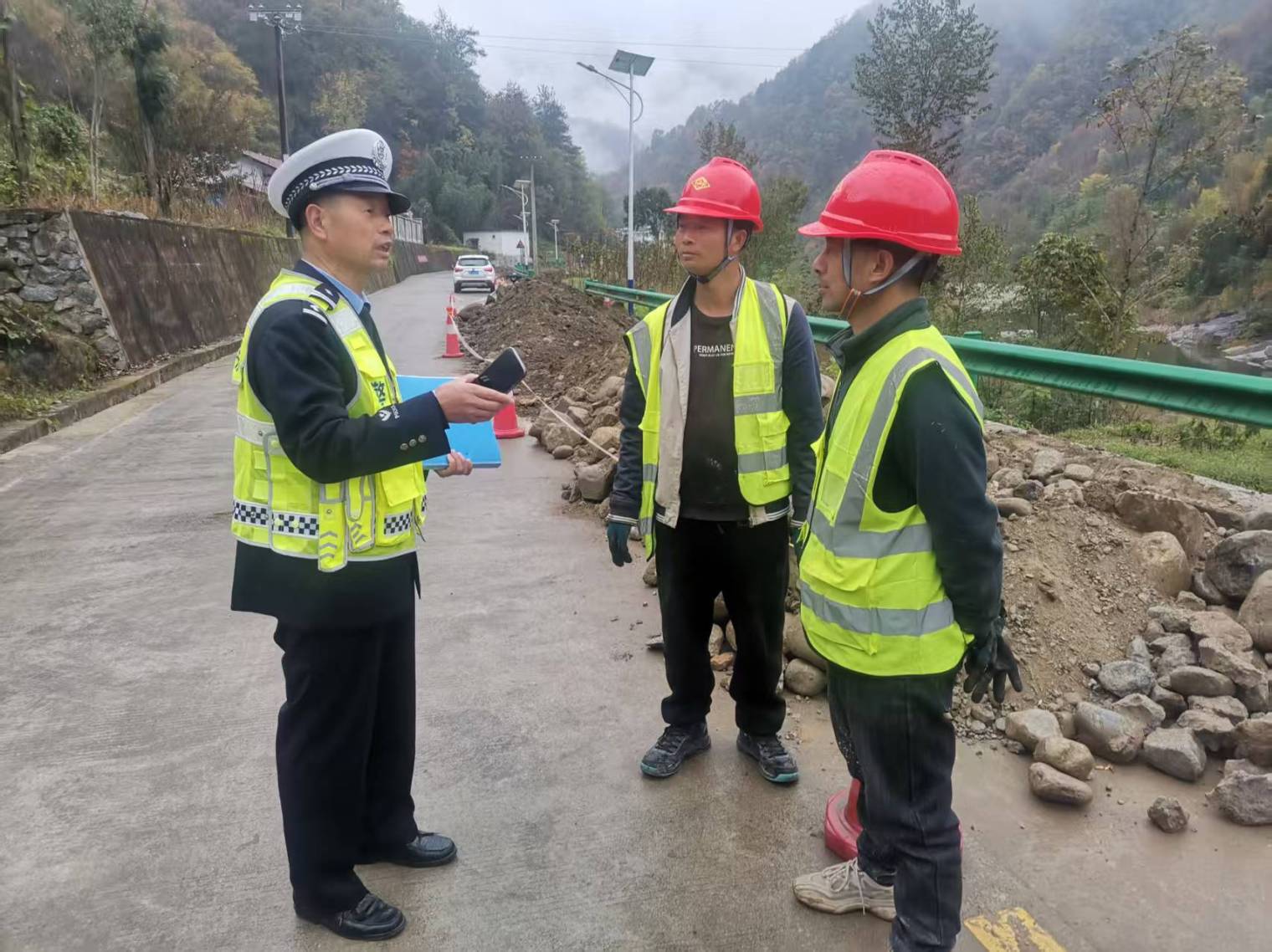 随着佛坪县岳坝镇涉路重点项目陆续开工,辖区道路交通安全形势日渐复杂。为切实保障辖区道路交通安全管理,岳坝派出所主动作为、精准发力,组织民辅警深入辖区各在建工地,开展全方位、无死角的安全管理专项督导检查与宣传教育工作,以“检查+宣传”双轮驱动模式,保障施工道路安全有序,护航辖区平安路。