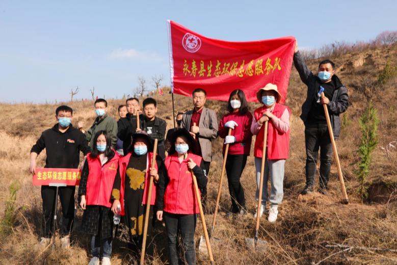 春回大地万物苏,植树添绿正当时。3月10日,咸阳市生态环境局永寿分局学雷锋志愿者们来到民丰村朱介沟植树点开展2023年春季县级机关义务植树活动。