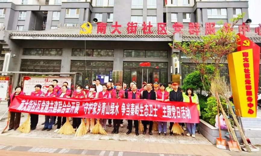 在志愿服务活动中, 全体党员认真学习《陕西省秦岭生态环境保护条例》,并和志愿者结合国家卫生县城复审工作要求,对居民小区内杂草、垃圾杂物、卫生死角进行彻底清理。