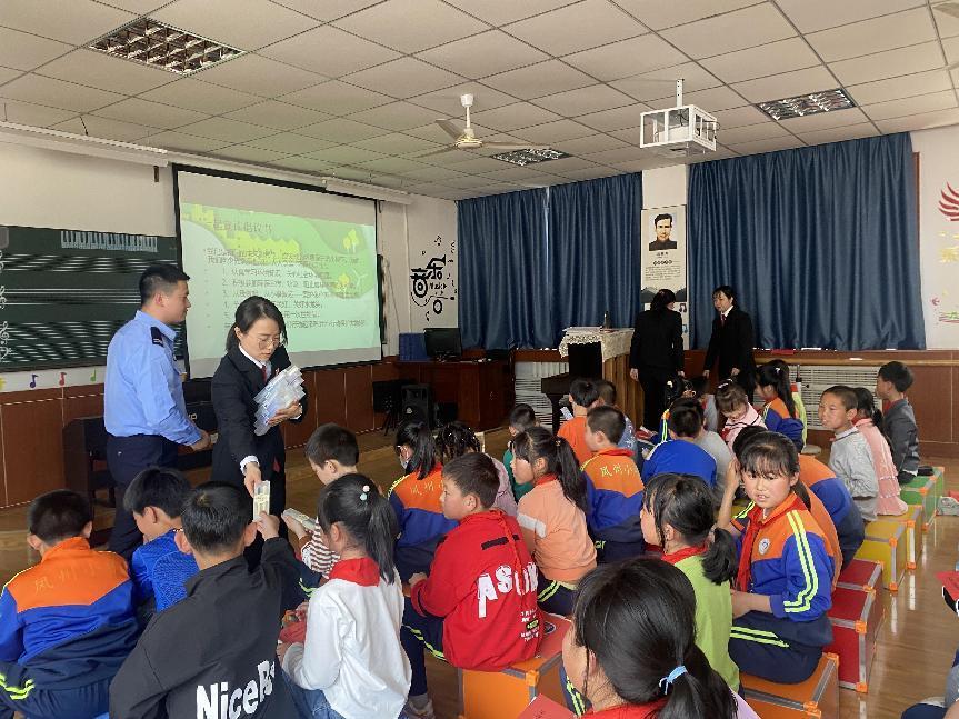课堂上,凤县人民法院法官干警通过给同学们介绍世界地球日、观看环保视频、普及环保知识、有奖问答等方式激发同学们参与活动的热情、引导同学们从小树立“保护环境人人有责”的意识,传播“人与自然和谐共生”的理念,最后与同学们一起发起“人人争当环保小卫士,用小行动保护大地球”的倡议。