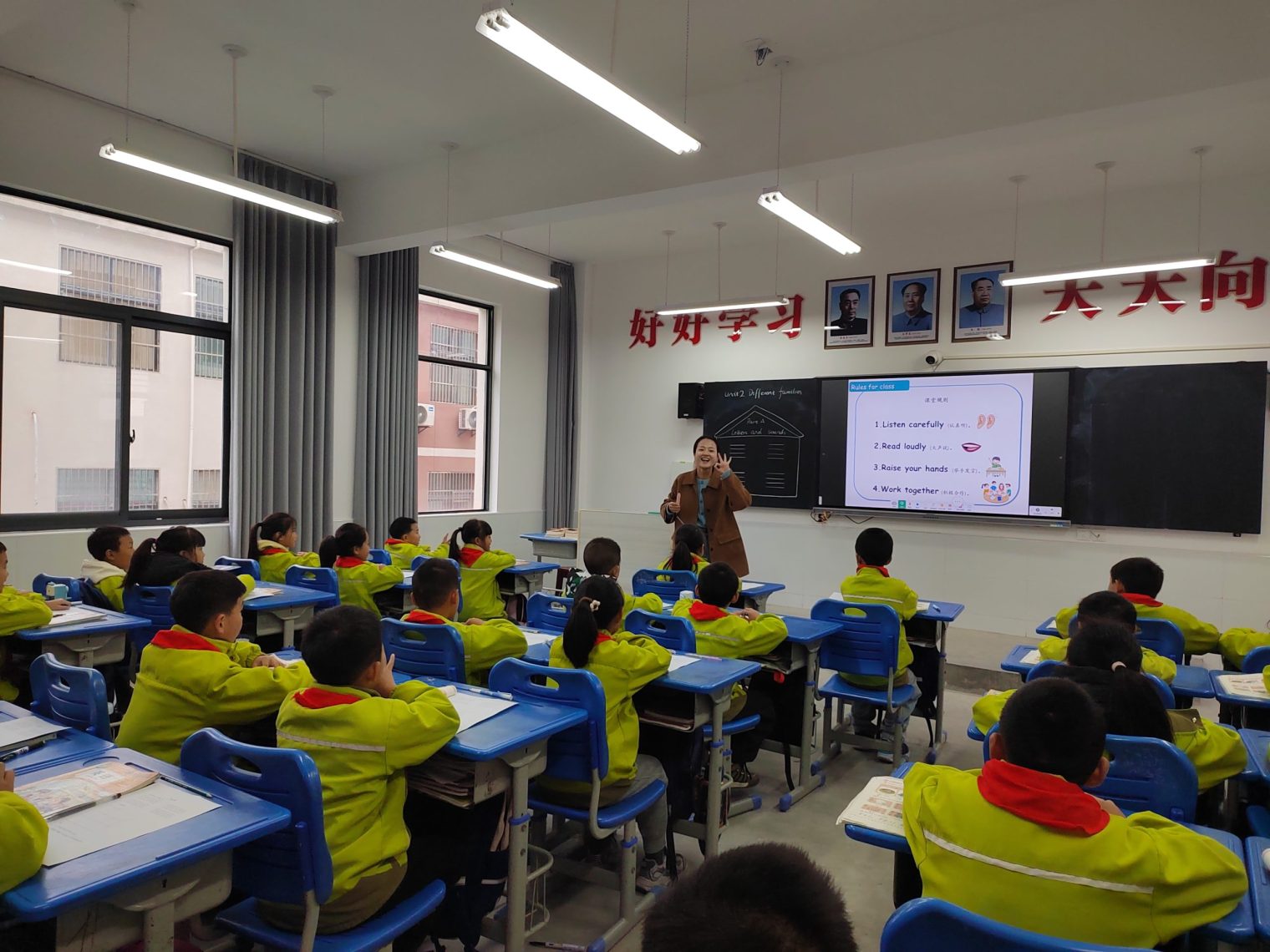 活动伊始,众人齐聚三年级教室观摩。杨舒老师凭借扎实专业功底、丰富教学经验与感染力强的教学风格,呈现了一堂高水准示范课。课堂上,她紧扣教学目标,巧妙设计环节,通过创设情境、组织游戏互动、运用教具和多媒体资源,激发学生学习兴趣与参与热情。学生们积极思考、大胆开口,课堂气氛活跃,教学效果显著,尽显名优教师风采与“以学生为中心”理念。