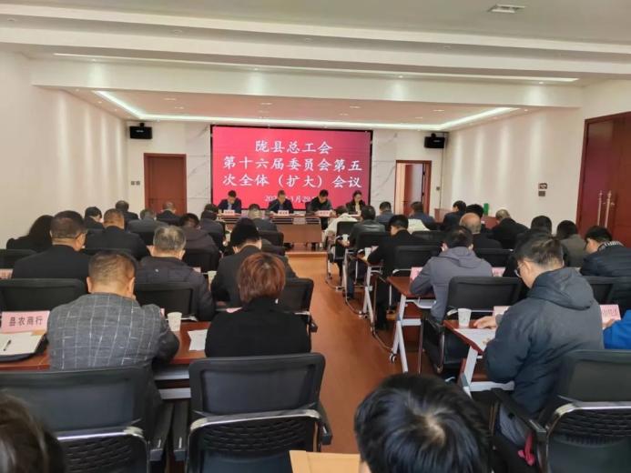 3月29日,陇县总工会召开第十六届委员会第五次全体(扩大)会议。县总工会主席曹大革出席会议并讲话,县总工会副主席李志力主持会议。县总工会第十六届委员会委员、各镇总工会主席、部门工委主任、工会社会化工作者及受表彰的2022年工会工作先进集体和先进个人代表参加会议。