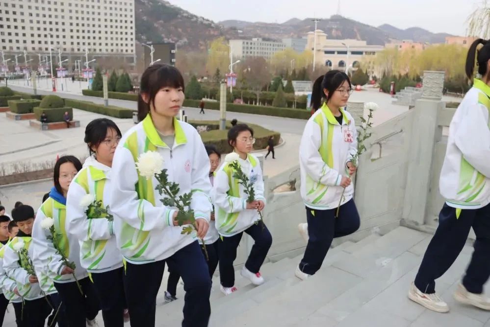 学校教师代表和学生代表怀着崇敬的心情,向烈士敬献鲜花,告慰英雄忠魂。
