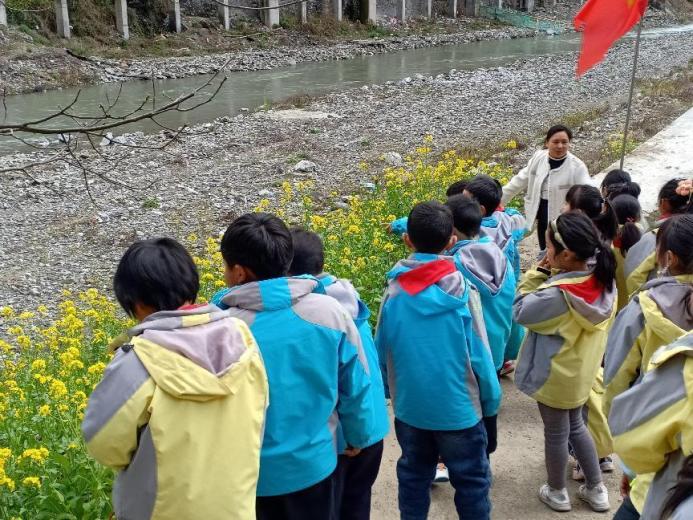 活动中,师生们每走到一处,就向大家介绍了所见植物的特点、共同回忆了课堂上所学过了形容颜色的词语和描写春天的诗词佳句;同学们化身自然界“小小观察员”,相时而动的在老师指导下观察了周围的花草树木和昆虫(动物)、感受春暖花开时节的万物生机、分享自己发现的“小秘密”;当行至东风村康养景点时,教师因势利导对学生进行了公德和环保教育,孩子们可掬的笑容洋溢在脸上……