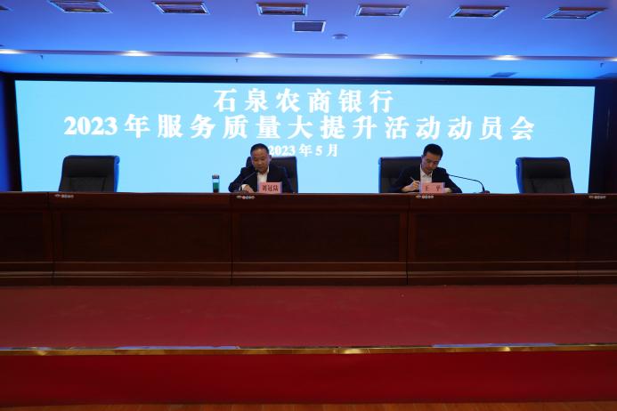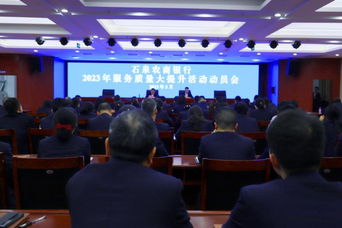 为贯彻落实省委省政府“营商环境突破年”活动部署,按照全省农合机构2023年消保暨客户服务工作会议要求,5月9日,石泉农商银行在总行十七楼会议室组织召开了2023年服务质量大提升活动动员会。总行领导,各机构负责人、会计主管,城区机构及机关全体人员共计120余人参加了会议。会议由副行长王平主持。