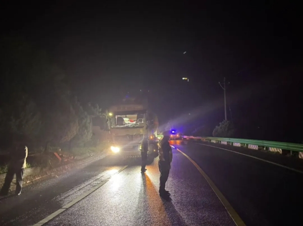 “太感谢你们了!要不是交警同志,我们今晚不知道要困到什么时候,更别说能平安回家了,你们真是老百姓的守护神!”危化品车驾驶员夫妻俩紧紧握着民警的手,激动得热泪盈眶。10月1日20时许,甘泉县公安局交警大队道镇中队四名民警按部署开展夜间巡逻,行至麻子街上坡弯道时,发现一辆危化品车因机械故障抛锚在道路关键位置。彼时雨势渐大、夜色浓重,上坡弯道视线差、车流密,危化品车滞留极易引发严重事故。四名民警立即分工:一组紧急联系危化品车辆专业修理工,精准说明情况以争取抢修时间;另一组冒雨在来车方向设置警示标志,站在道路中央用手势和喊话引导车辆减速绕行。