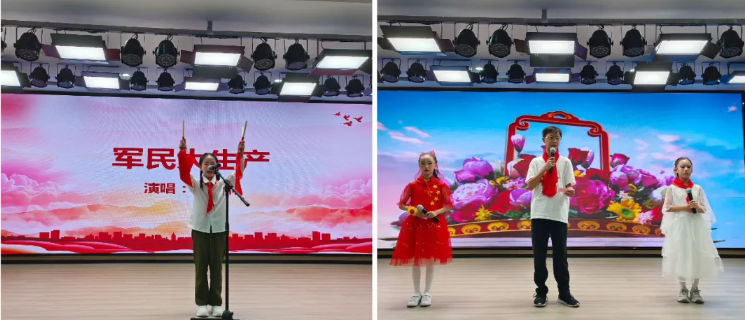 龚亭宇以一支舞蹈《我的祖国》拉开演出序幕,灵动的舞姿勾勒出祖国山河的壮阔;冯正翔唱响《红军领咱打江山》,嘹亮歌声唤起红色记忆;李成蹊朗诵《彩色的中国》,稚嫩嗓音描绘出祖国的斑斓与美好;左可旭的亲子朗诵《沁园春·雪》则以默契配合,展现出经典诗词的磅礴气势。此外,张本怡、彭艺雯等表演者带来的《童心向党》《万疆》等歌曲,传递出青少年对祖国的赤诚热爱;王雅楠的快板《庆国庆 说中国》节奏明快,用传统艺术形式诉说祖国发展成就;赵雅煊的钢琴演奏、马馨晨的葫芦丝表演、李昀宸的萨克斯独奏,更以多元艺术表达为活动增添亮色。