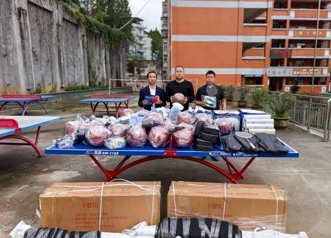 此次捐赠的物资不仅种类丰富,更显用心良苦。从篮球、排球、羽毛球拍,到乒乓球、羽毛球,再到配套的足球门网、篮球网、排球网、羽毛球网以及排球架子和乒乓球台,每一件都经过精心挑选,贴合学生实际运动需求,切实弥补了学校体育教学的短板。