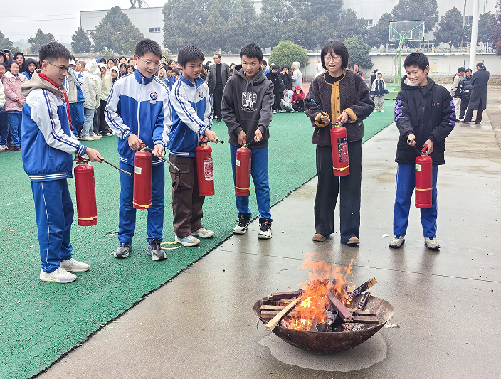 在全国第 34个“119 消防安全日” 来临之际,11月6日,汉阴县涧池初级中学教共体成员校蒲溪初级中学组织全校师生开展消防应急演练活动,通过 “理论讲解 + 实战操作 + 总结强调” 的模式,筑牢校园安全防护网。