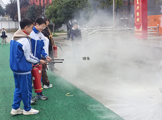 演练中,学校安保处副主任聚焦干粉灭火器使用这一核心技能,开展现场教学。他结合实物演示,清晰讲解灭火器 “提、拔、握、压” 四步操作法:“提起灭火器,拔掉保险销,一手握住喷管对准火焰根部,另一手用力按下压把,左右扫射直至火焰熄灭。” 同时强调:“灭火时要站在上风向,保持安全距离,切勿对着火焰顶部喷射。” 随后,10 余名师生代表依次上台实操演练,在安保处副主任的现场指导下,准确完成每一个操作步骤,成功扑灭模拟火点。