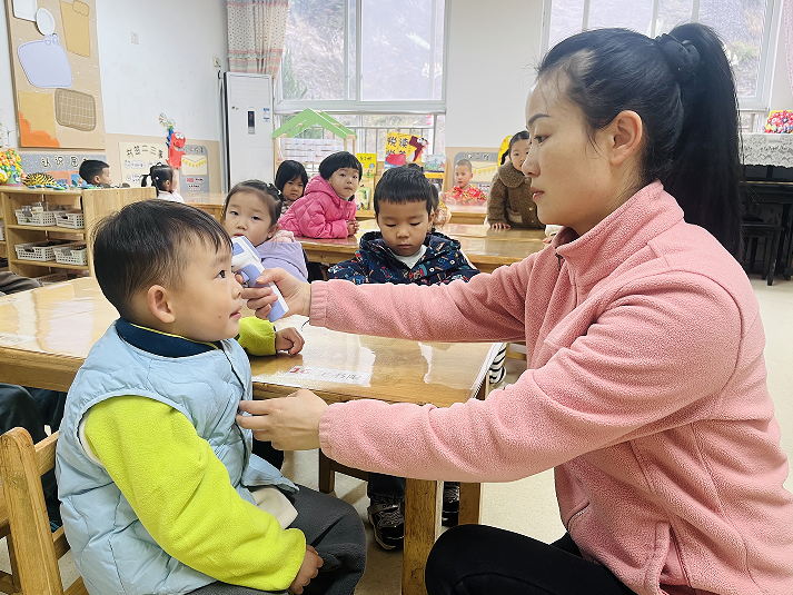 本次演练模拟了班级幼儿活动中突发发热、咳嗽等疑似流感症状场景,班级教师第一时间发现后,立即暂停活动,轻声安抚幼儿情绪,用额温枪精准测温,确认异常后迅速将幼儿带至室外,并及时联系保健医生。保健医生抵达后,再次细致检查,经初步判断,疑似流感病例,保健医生立即进行逐级上报,做好信息登记,同时联系家长告知情况,请其尽快来园接幼儿就医,随后班级进行环境消杀工作。整个过程紧张有序,各环节衔接顺畅,操作规范到位。