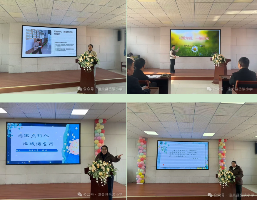 为进一步弘扬爱岗敬业、立德树人的育人精神,展现教师队伍的责任与担当,近日,潼关县岳渎小学“讲育人故事践使命 聚团队力量显担当”教师主题演讲比赛圆满落下帷幕。本次比赛分阶段有序开展,历经班主任场、4 – 6年级组场、1 – 3年级组场三场初赛的激烈角逐,最终16名优秀教师脱颖而出,站上决赛的舞台。