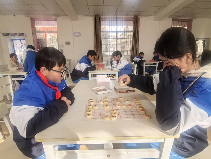 为传承中华优秀传统文化,丰富校园课余生活,12月16日,汉阴县涧池初级中学教共体成员校蒲溪初级中学成功举办了学生象棋比赛活动。全校各班象棋爱好者在楚河汉界间展开智慧角逐,展现了良好的竞技风貌与文化素养。