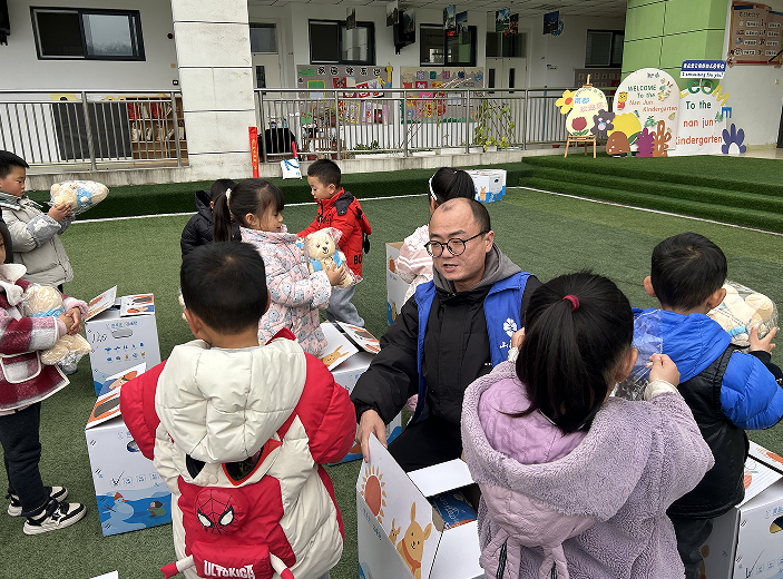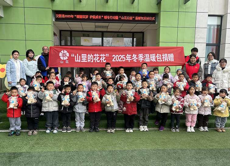 近日,山里的花花西部公益组织走进汉阴县涧池镇紫云南郡幼儿园,开展“暖童筑梦 护航成长”暖冬行动暨温暖包发放活动。志愿者们为园内四十余名家庭经济困难幼儿送上温暖包,与孩子们亲切互动,细致了解他们的生活情况,用实际行动传递关怀。