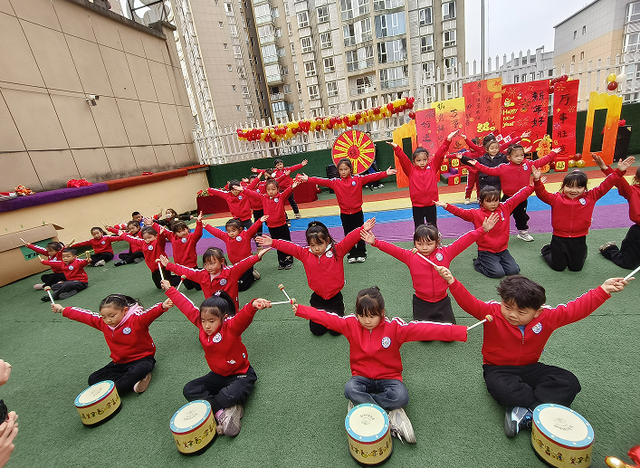 活动伊始,孩子们身着统一的红色园服,带来了精彩的鼓乐表演和啦啦操展示,稚嫩的动作、欢快的节奏瞬间点燃现场气氛;老师们还为跳蚤市场举行了温馨的剪彩仪式,宣告这场童趣满满的“小集市”正式开市。