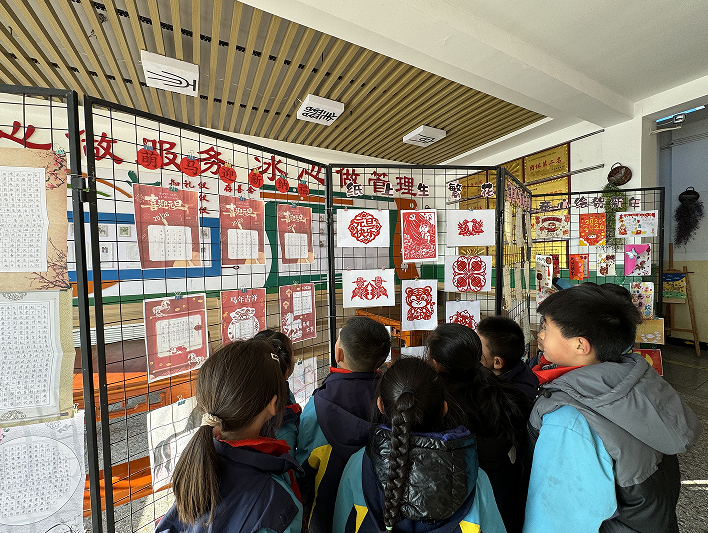 校园展厅内,“童心绘新年”书画展精彩亮相,百余幅学生作品琳琅满目、创意十足。软笔书法作品遒劲有力,硬笔书法工整清秀,一撇一捺间尽显中华汉字的韵味与魅力;绘画作品色彩斑斓、构思巧妙,红灯笼、福字、新年集市、校园雪景、航天梦想等元素跃然纸上,每一笔都饱含着孩子们对新年的美好憧憬。师生驻足观赏、轻声点评,在笔墨丹青中感受美、鉴赏美、创造美,尽显学子扎实的艺术素养与无限的想象力。
