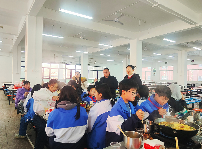 寒冬腊月,暖意涌动。1 月 13 日,汉阴县涧池初级中学教共体成员校蒲溪初级中学学生餐厅内笑声连连、香气四溢,一场以“热辣滚烫庆新年,火锅温暖留守心” 为主题的留守孩子关爱活动在此温情举行。老师们与留守孩子围坐一堂,以火锅为媒,用陪伴作礼,让孩子们在欢声笑语中感受家的温暖,喜迎新年到来。