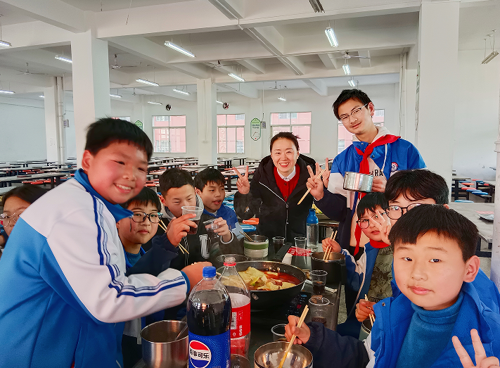 “今天太开心了,能和老师同学们一起吃火锅特别有意思。”七年级一名学生说道。