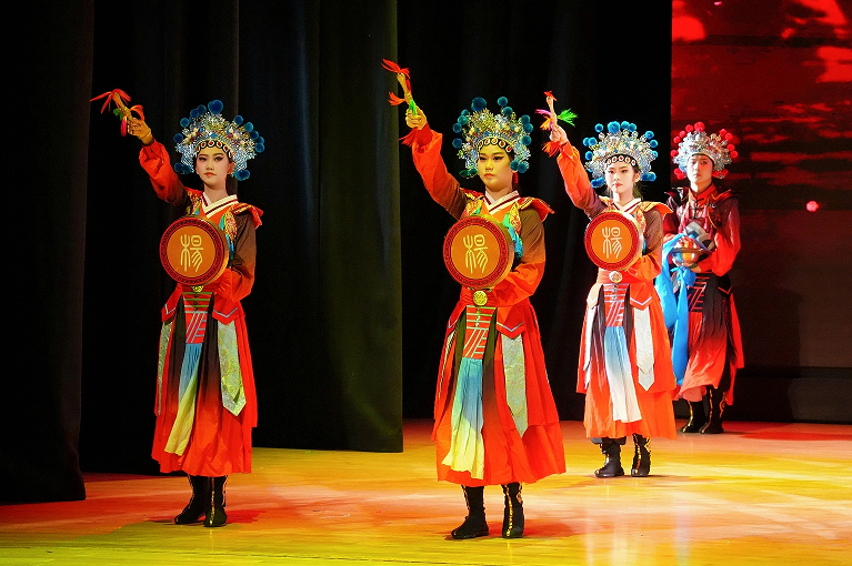 在香港理工大学举行的“小使者看大戏”主题闭幕式演出现场,“忠勇杨家鼓”学生表演队以欢快的鼓点、靓丽的服饰和绚丽的舞姿,充分展示了杨家将纵横沙场、保家卫国的英雄气概,弘扬了新时代神木忠勇爱国的城市精神,也向香港民众展示了陕北文化艺术的独特魅力。