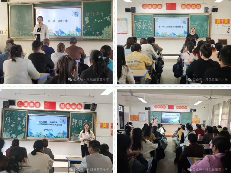 为进一步加强家校沟通,凝聚教育合力,扎实推进协同育人工作,4 月 8 日至 9 日,丹凤县第三小学以“同心共育・静待花开”为主题,召开 2026 年春季家长会。