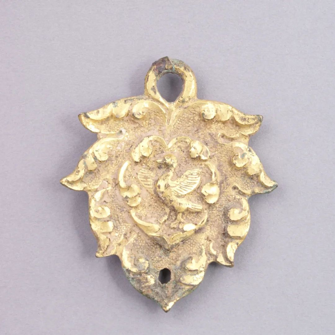 这些马饰做工精美、讲究,材质为铜质;工艺为范铸鎏金,造型图案各有不同,但基本外形很像我们经常见到的杏树叶,所以古人干脆依此称之为杏叶。如有“团花形中间镶嵌宝石”的、“卷草纹中心镶嵌宝石”的,花心的圈内原有镶嵌有宝珠类饰,现已脱落。