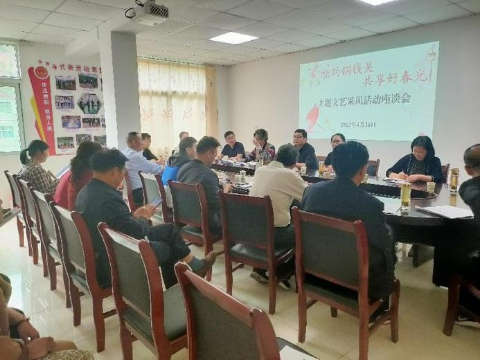 采风活动期间,镇长刘续组织召开了“相约铜钱关 共享好春光”主题文艺采风活动座谈会。会上,采风团向铜钱关镇赠送了《石榴花》、《旬阳匾联故事》等书籍。刘续镇长就全镇的自然、文化、产业和旅游资源进行了详尽的介绍,生态旅游高质量发展实施规划进行了细致的说明,同时就旅游宣传、故事挖掘、作品切入点等事项同采风团的专家们进行了交流,提出了期盼。文联主席魏连新、美协主席王玺、摄影协会主席李小可等多位专家进行了发言,对铜钱关的自然景观、人文风俗给予了高度的评价。