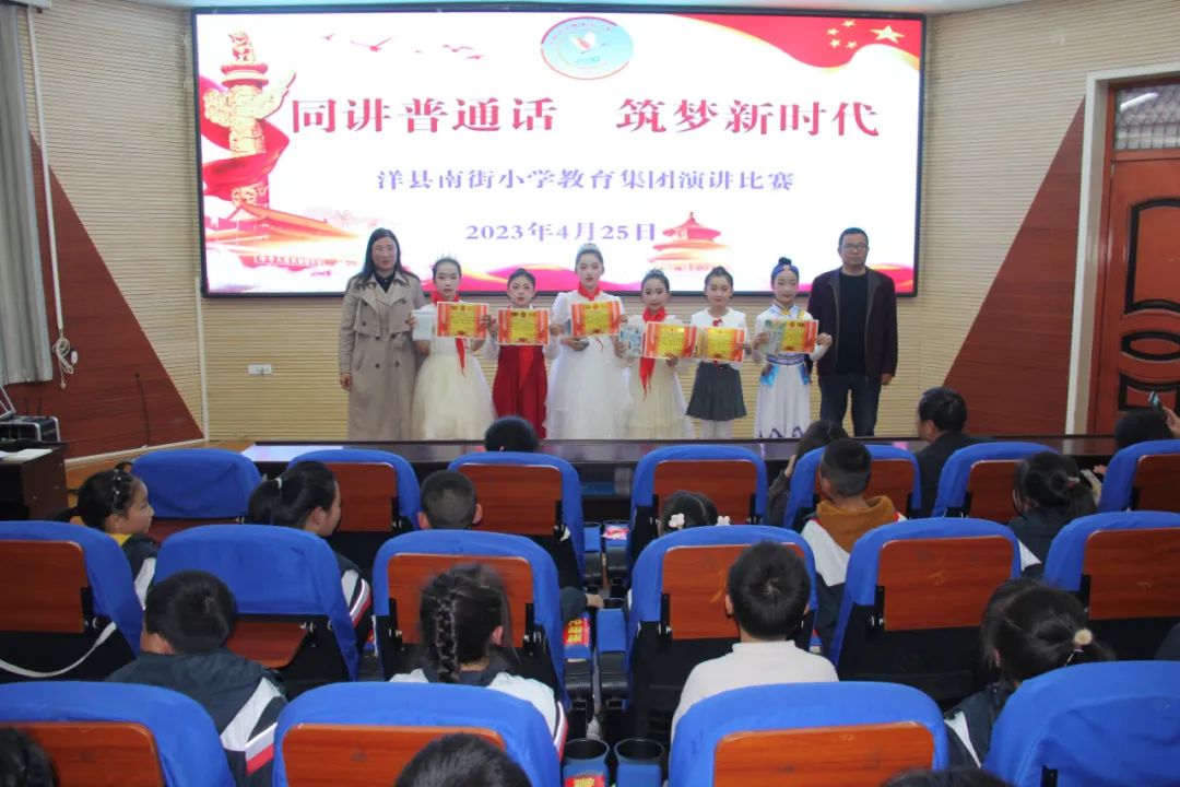 4月25日,洋县南街小学教育集团举行“同讲普通话 筑梦新时代”演讲比赛,南街小学、槐树关中小、黄安中小、黄金峡中小遴选出的12名优秀选手、师生代表共200余人参加了活动。