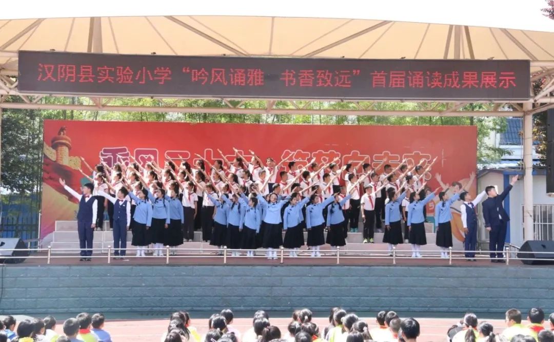 为进一步丰富校园文化,检验汉阴县实验小学阅读工程成果,4月25日,汉阴县实验小学特举行“吟风诵雅 书香致远”为主题的首届诵读成果展示活动。旨在提高师生审美情趣,丰厚人文底蕴,培养儒雅气质和高尚品性,让书香飘满校园。参加活动的有县图书馆领导及工作人员、实验小学全体师生。