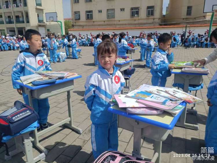 一年级的小学生在比赛前,书本、文具、物品等全都杂乱地摆在桌面上,随着老师一声令下,小选手们迅速将书本、文具盒装进书包。最快的选手用时1分36秒,就把书包收拾得整整齐齐啦!看,孩子们的小脸上绽放着自豪的笑容。