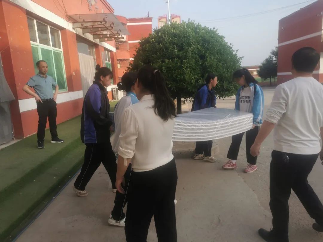 “谢谢教育局,谢谢学校,我们很喜欢我们的新床垫。”八年级一班成博同学满头大汗却洋溢着青春的笑脸对帮忙铺床的老师连连道谢。