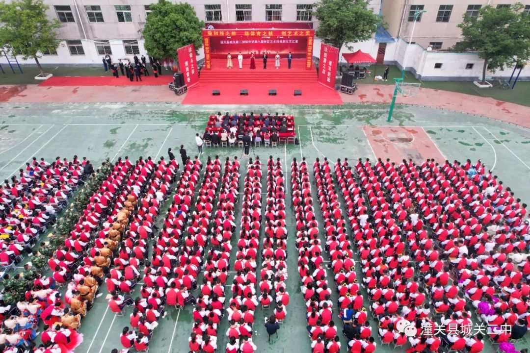 为培养学生艺术审美情趣和爱国爱校的思想意识,倡导学生健康向上的文化活动,5月5日,潼关县城关二中举行以“青春心向党 五育谱华章”为主题的第八届校园艺术科技节活动,进一步促进学生全面发展,营造“健康、和谐、积极向上”的校园氛围。