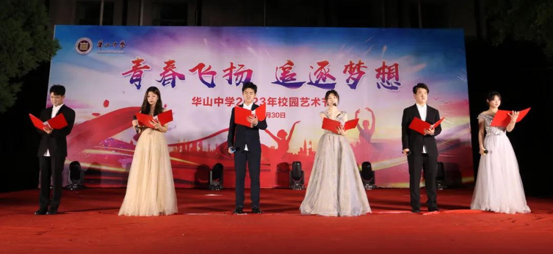 5月30日,云台书院,鲜花盛开,花灯璀璨,华山中学师生纵情高歌,欢乐舞蹈,2023校园艺术节隆重上演,一场艺术盛宴彰显华中学子青春飞扬、追逐梦想的精神风貌,展现华中美育的优秀成果。